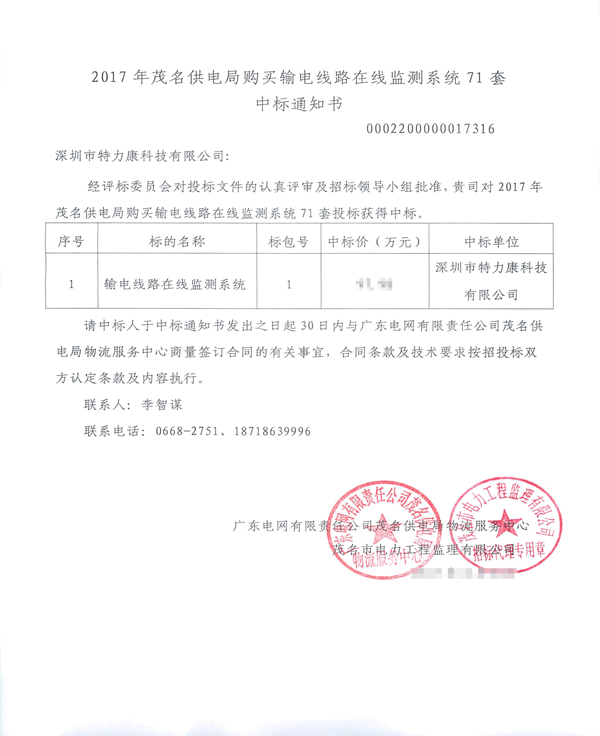 特力康中標國網黑龍江送變電工程公司的2024年度第18次物資類競爭性談判采購項目——慶陽驅鳥器物資框 特力康中標國網甘肅省電力公司省管產業單位2024年第五次物資競爭性談判授權采購項目 中標喜訊:深圳市特力康科技有限公司成功入圍許繼集團綜合能源公司輸電線路視頻在線監測裝置模塊集采項目 中標喜訊:特力康成功中標國網重慶市電力公司渝中一片區項目 特力康成功中標國網天津市電力公司2024年第二次?物?資招標項目 特力康中標國網安徽省電力有限公司蕪湖供電公司2024年3月非物質采購項目 山東電網 “穩塔哨兵”:特力康智能桿塔傾斜監測預警裝置筑牢電力桿塔安全防線 特力康科技輸電線路高清圖像監控裝置,為河南輸電通道筑牢安全屏障 黃土高原護塔穩:特力康傾斜監測裝置為山西電網筑牢根基 黔山冰防線:特力康 “數據 + 圖像” 雙監測守護貴州輸電線路 戈壁林區的 “火情哨兵”:特力康紅外熱成像裝置守護甘肅輸電線路 內蒙電網裝上 “舞動監測眼”:特力康輸電線路防舞動監測系統守護線路安全 浙江電力裝上“氣象哨兵”:特力康裝置守護電網應對臺風暴雨 蜀道巡線不用“爬”:特力康視頻在線監測裝置守護四川輸電鐵塔 風雪中的 “防冰哨兵”:內蒙古電力用特力康監測系統筑牢覆冰防線 雙軸感知護塔穩:山西電力用特力康裝置破解采空區傾斜難題 寧夏配電線路安裝了我司防外破電子化智能警示牌